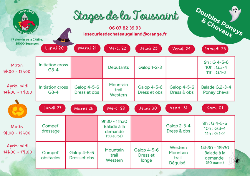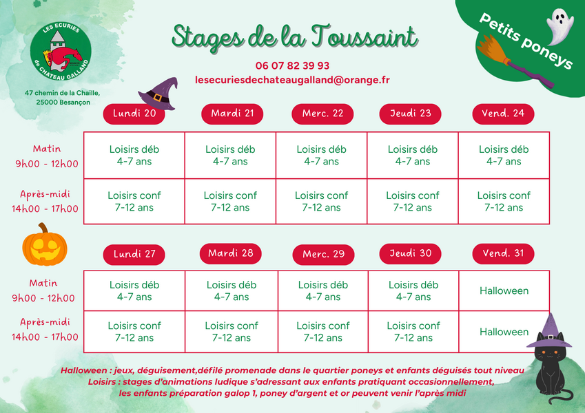 Merci à tous de respecter les modalités d'inscriptions pour les différents stages des vacances :