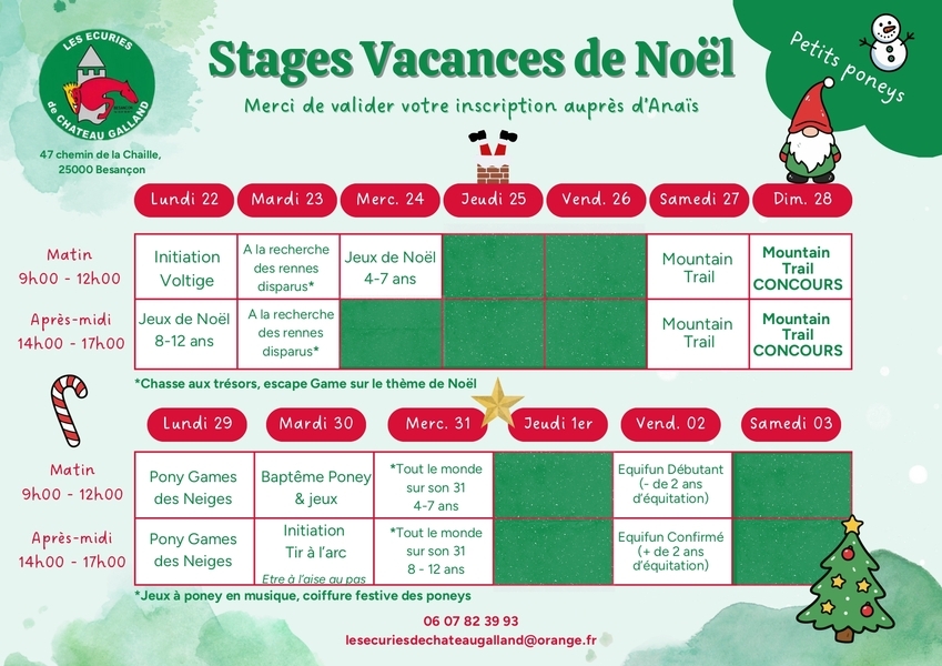 Merci à tous de respecter les modalités d'inscriptions pour les différents stages des vacances :